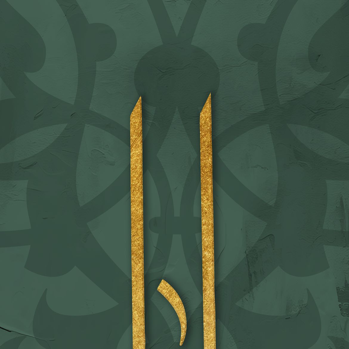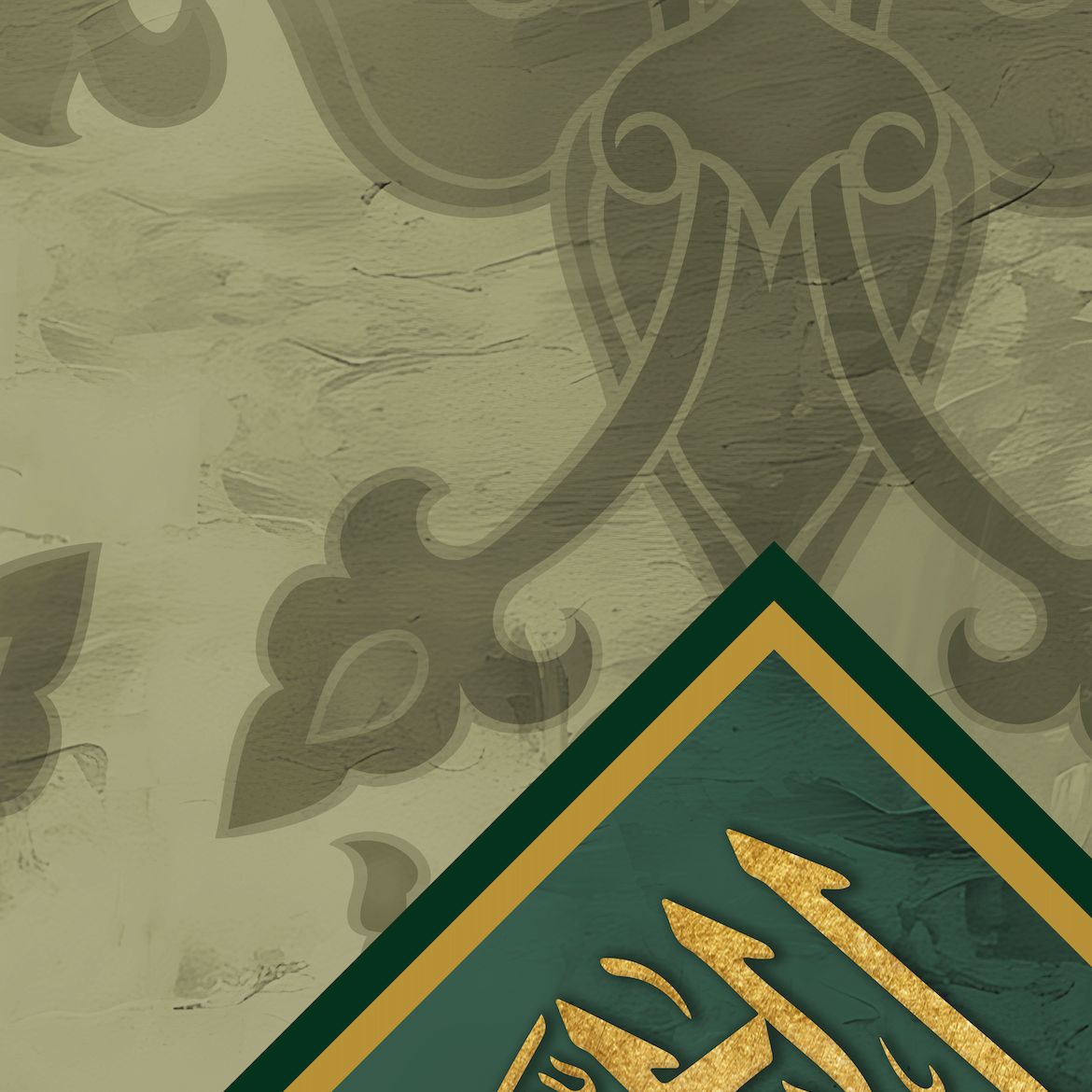 Olive-Taupe Patterned Background: Evokes timeless Islamic textures, grounding the piece in classic elegance.