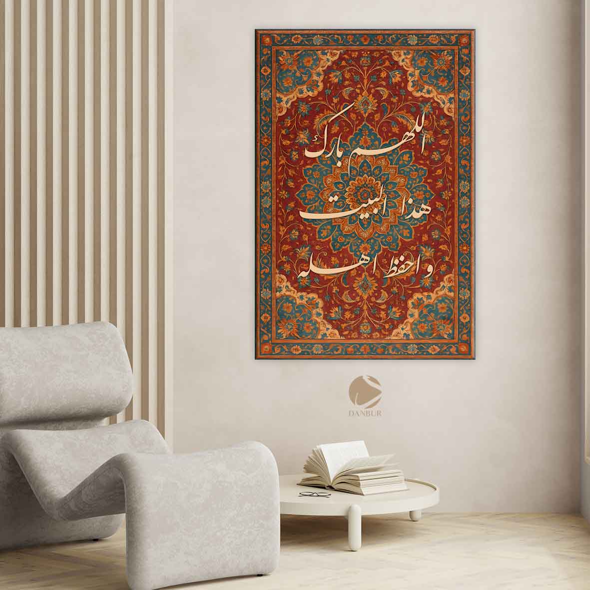 This sacred duʿā’ (supplication) expresses a heartfelt plea for divine blessings and protection upon one’s household and family. Rooted in Islamic tradition, it reflects both humility and trust in Allah’s mercy. When displayed in the home, it serves as a gentle, daily invocation for peace, protection, and barakah (divine grace), nurturing a spiritually charged environment filled with faith and gratitude.