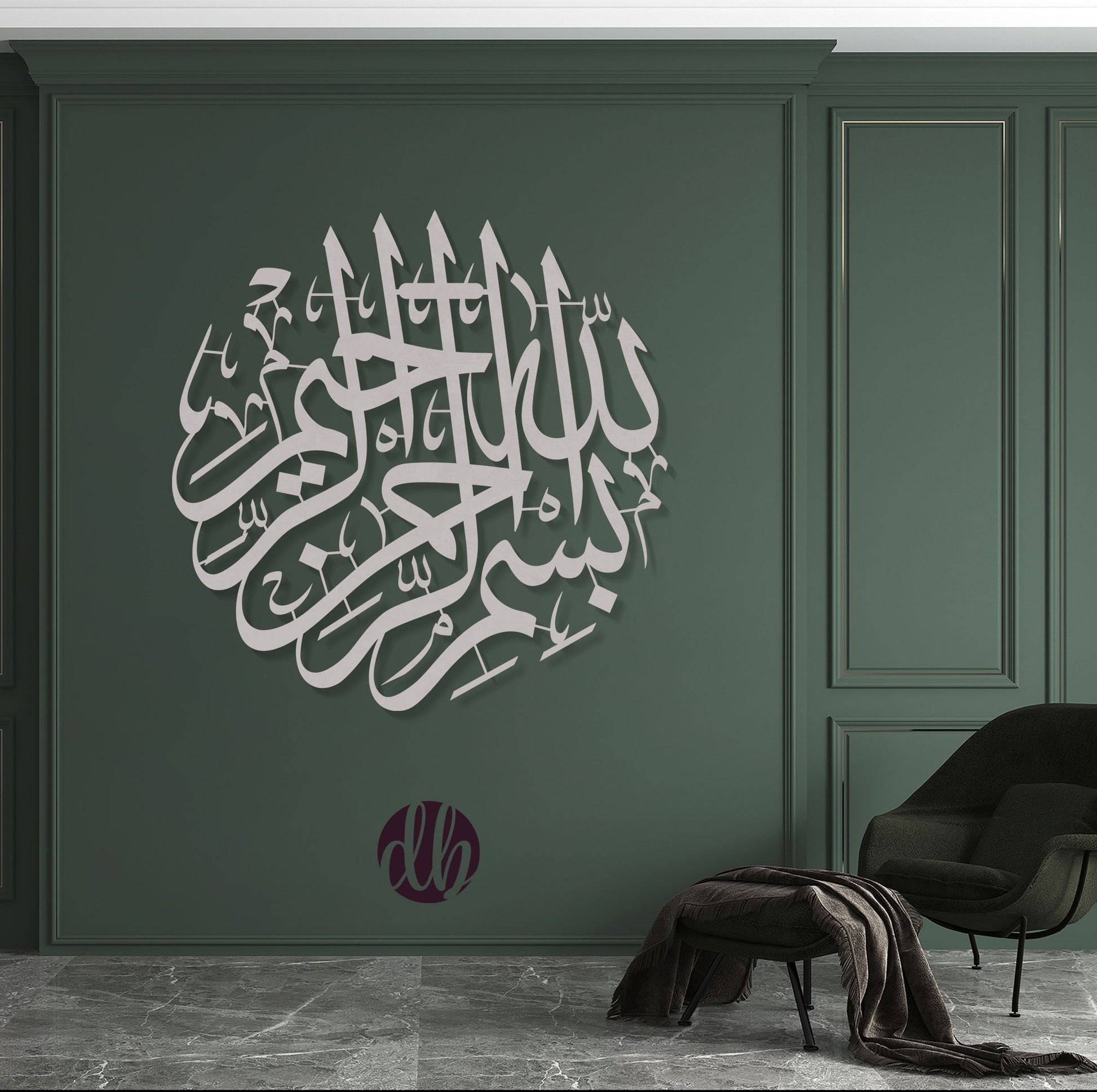 Its bold curves and angular structure reflect intention and strength — a daily visual dhikr for every space.