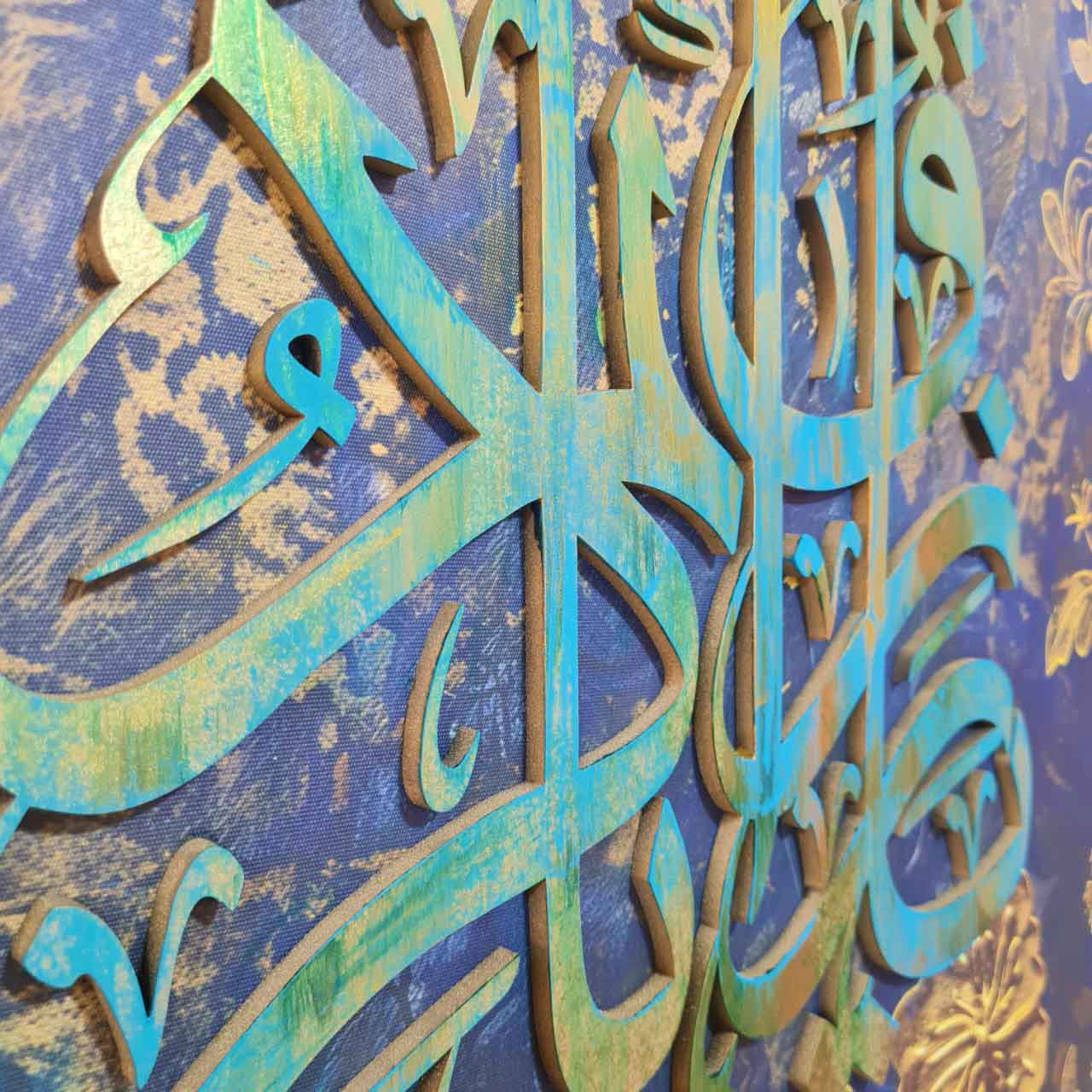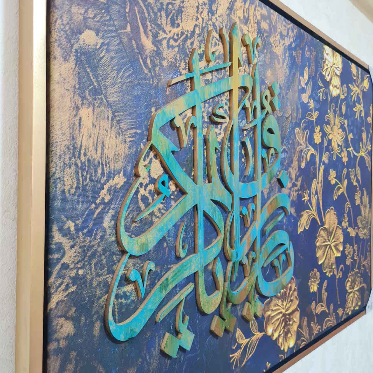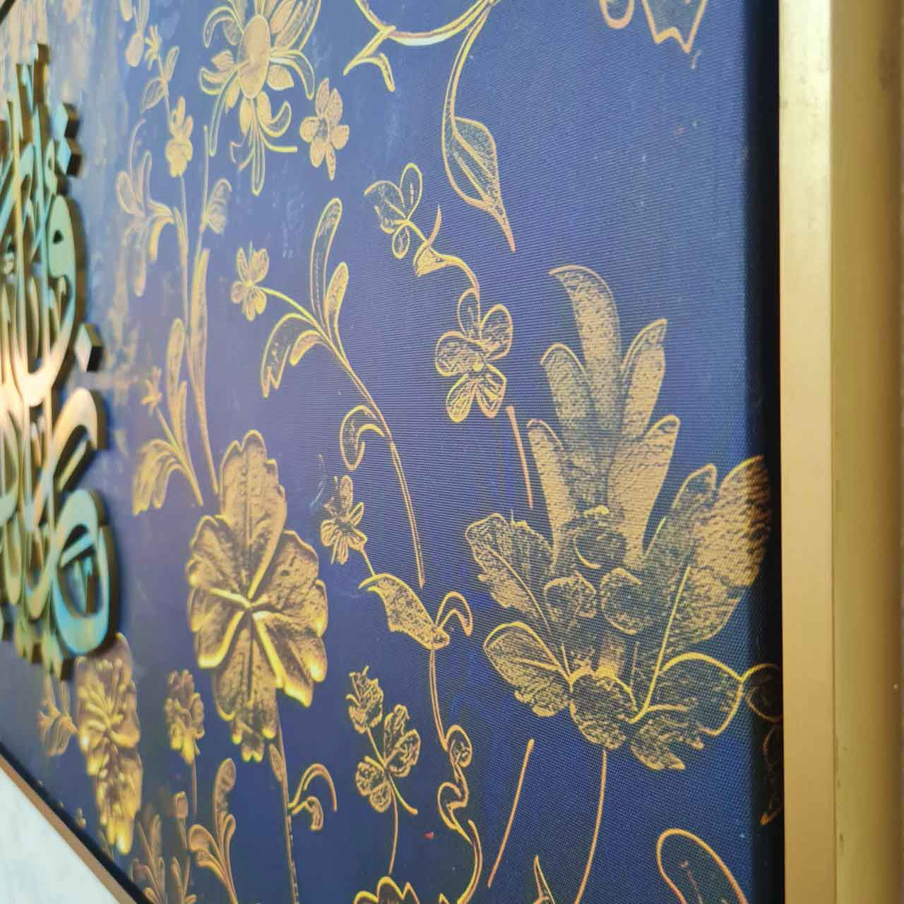 - Experience the magic of our 3D calligraphy in a stunning gold floating frame with a beautifully printed background. Ready to hang and enhance your space with its unique touch of elegance.