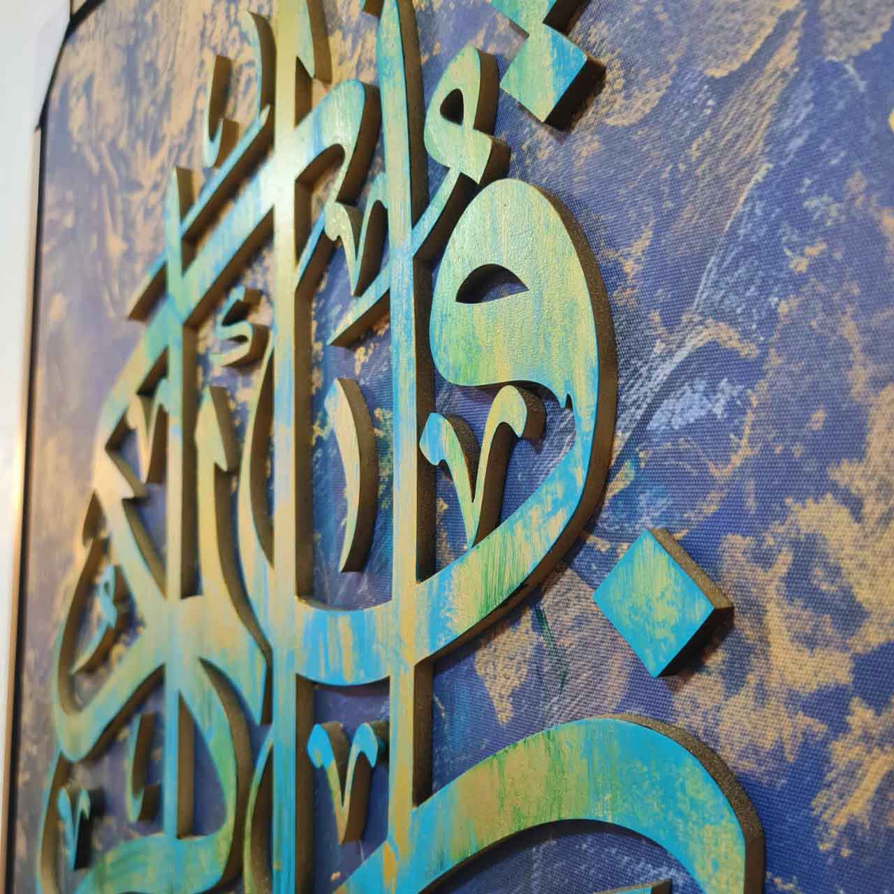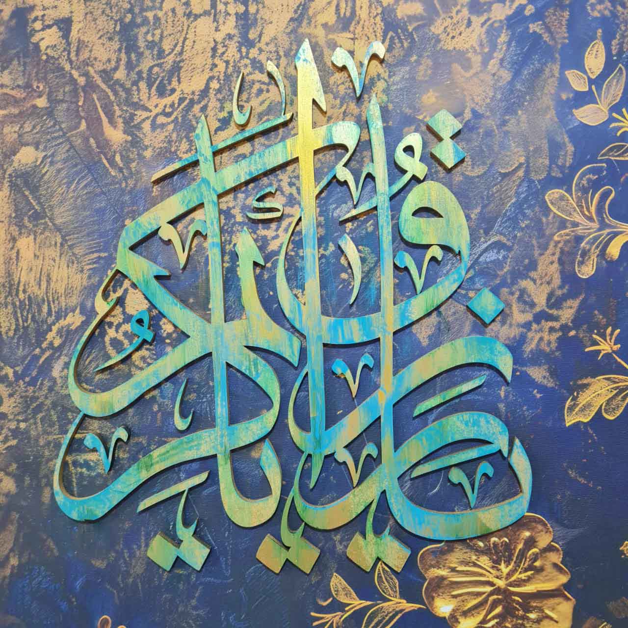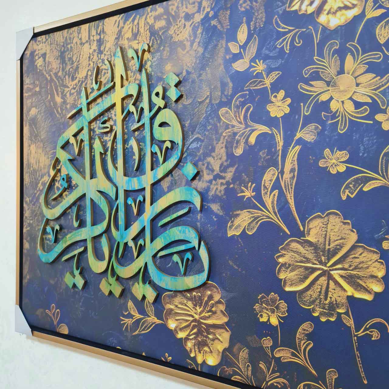- Experience the magic of our 3D calligraphy in a stunning gold floating frame with a beautifully printed background. Ready to hang and enhance your space with its unique touch of elegance.